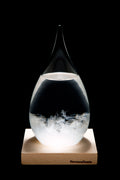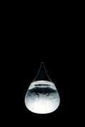 美しい雫型のガラス容器に入った不思議な液体が、天候の変化に応じて様々な表情の結晶化を繰り返すオブジェです。大小の様々なカタチの結晶や、沈殿が多くなったり、液体が澄んだり、浮遊物が生まれたりと変化を楽しむことが出来ます。ストームグラス(天気管)と呼ばれ19世紀ヨーロッパで主に航海時の天候予測器として使用されてました。天候を予知し、雷雨がやってくる方向が読み取れる等と信じられていましたが、結晶化現象については謎が多い事がわかり、いまだ詳細は研究途上です。