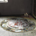 The Fox and the Giraffe Rugは非現実的なフォックスとジラッフをメインにあしらったラグです。東洋婦の古典絵画のような印象をコミカルに、そのミスマッチを楽しむようなデザインが特徴的です。セラミックプレートのような印象は、Angela Rossiのアーティストとしてのアンティークプレート使用した作品に見られるモチーフを大型のラグに仕上げています。コラージュやパッチワークをリサイクル品、破損品、忘れられたアイテムからミックスして生み出す独自のスタイルです。ファンタジーの世界から飛び出したような印象のユニークなラグデザインに仕上がっています。