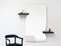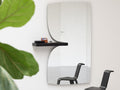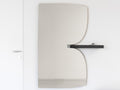 The Morphed Mirror Shelfは、有機的なフォルムのミラーとシェルフで組み合わさったウォールミラーです。平面に押しつぶされた立体を感じさせる独特のフォルムが、光や影で表情を変え、空間に動きと深みを与える特徴兎的なデザインです。鏡の中に現れるのは、波の揺らぎ、包み込むような抱擁、親が子をそっと抱きしめるような温もり。それは単なるインテリアではなく、記憶や感情に訴えかける静かな詩。そこに見るのは姿だけでなく、あなた自身の物語かもしれません。立体が平面へと変貌するその過程が、“鏡”という日常的なオブジェクトに彫刻のような存在感を与えます。Shelfモデルは小物や植物を飾りながら、設置向きは固定されますが、機能性とデザイン性を両立しています。