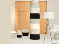 Tripode G5 Stripeは、Tripodeシリーズ25周年を記念し発表されたストライプシェード2種からなるフロアランプです。デザインはバルセロナ出身のテキスタイルデザイナー、Julia Esqueによるものです。ThinとThickの2種類のストライプは、シンプルなパターンながら清潔でファッショナブルな印象をしっかりと感じさせてくれます。