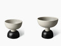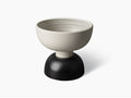 ZZ66A-500-501 Raised Bowlは、彫刻的な造形が特徴的なレイズドボウル(台座付きボウル)/センターピースです。イタリアを代表するデザイナーEttore Sottsassによるデザインです。1950年代の作品とは思えないほどモダンなデザインで、轆轤(ろくろ)で成形された白塗りのマットな質感の陶器に、大胆かつ繊細にブラックのラインが描かれています。フルーツ皿やオーナメントとして最適です。